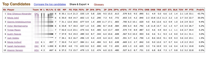 BBR s current top ten MVP list: Alexander, Jokic, Antetokounmpo, Wenban, Maxi