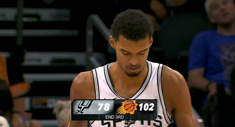 The Spurs were not only suppressed in the second quarter, but also lost another 11 points 28-39 in a single quarter. After halftime, the Spurs were already 18 points behind. It was not until 1 minute and 07 seconds left in the first half that Vumbanyama scored his first point of the game with an easy layup in the penalty area. Throughout the first half, Vumbanyama played for 17 minutes, making 1 of 5 shots, scoring 2 points, 5 rebounds, 2 assists and 2 blocks. He made 2 turnovers and had a plus-minus of -6.