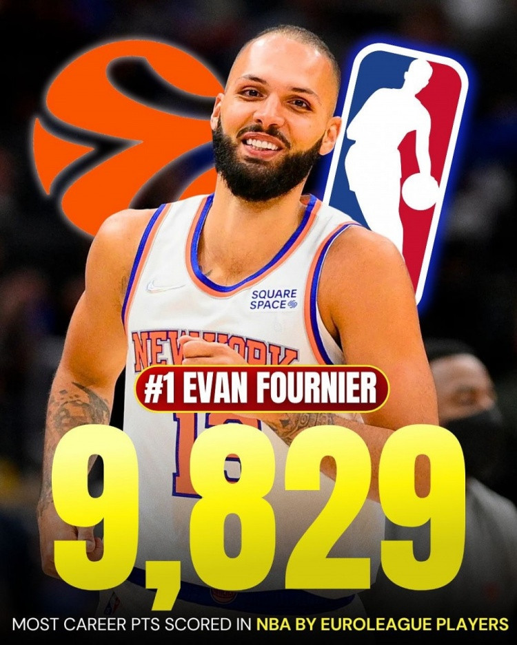 October 20th European media Eurohoops reported that they counted the ten active EuroBasketball players with the highest NBA career scores. Among them, the number one player is French player Fournier, who currently plays for Olympiakos. He has scored a total of 9,829 points in the NBA.