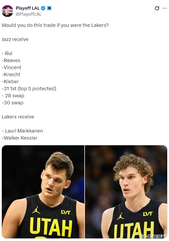 Now that Makar can be traded, Lakers media Playoff LAL hopes that Pelinka can acquire Makar and Kessler at the same time. He simulated a trading plan. The Lakers sent Reeves, Vincent, Knecht, Kleber, a first-round swap in 2028, a first-round swap in 2030, and a top-five first-round protection in 2031 to acquire Makar and Kessler.