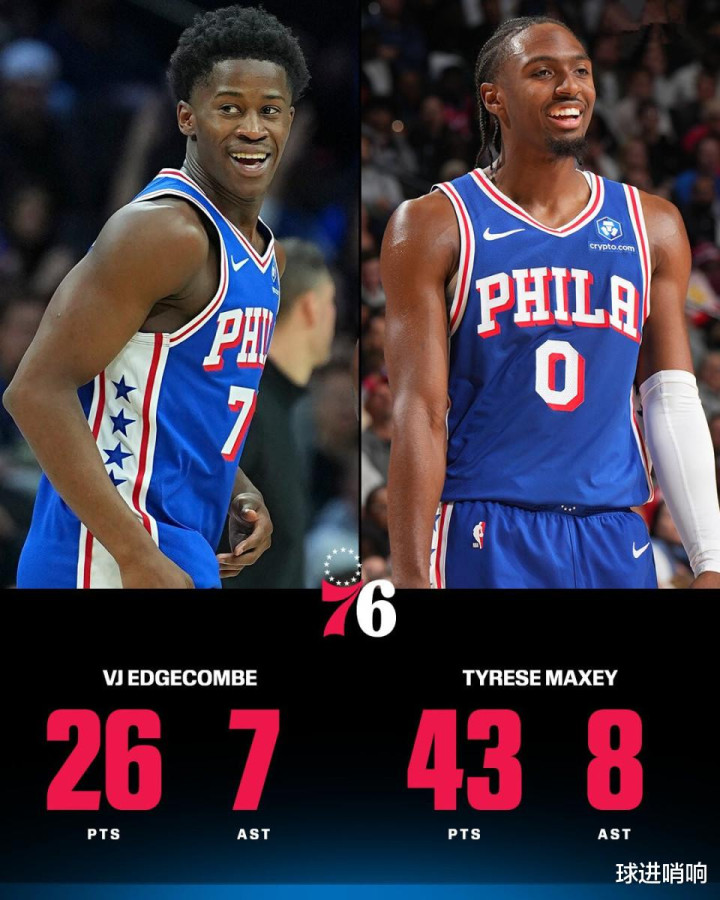 Faced with the miraculous performance of Maxey and Edgecombe, several American media, including NBA officials and ESPN, could not help but publish their data and lament the miraculous performance of the backcourt duo since the start of the game.