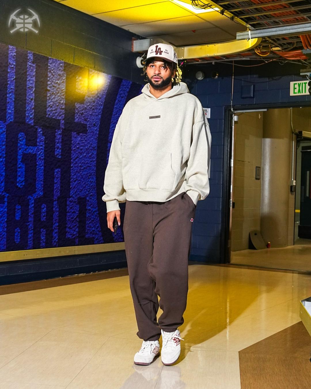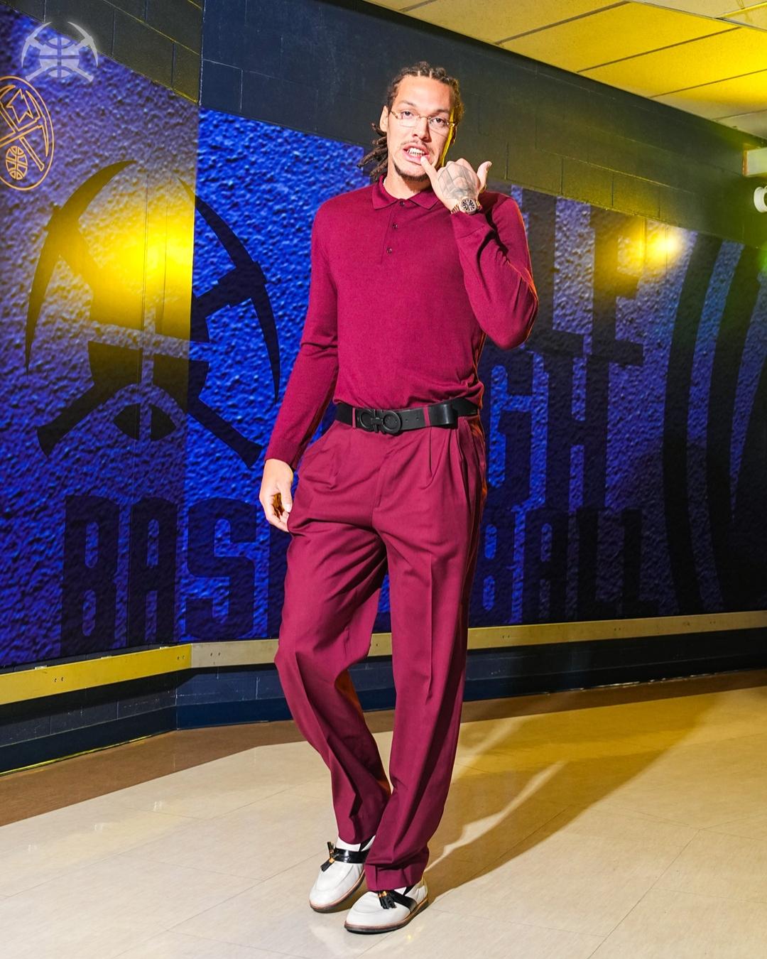 The Nuggets players entered the home arena, and Jokic was very conspicuous in his suit.