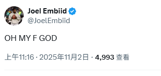 76ers player Joel Embiid tweeted: "OHMYFGOD"