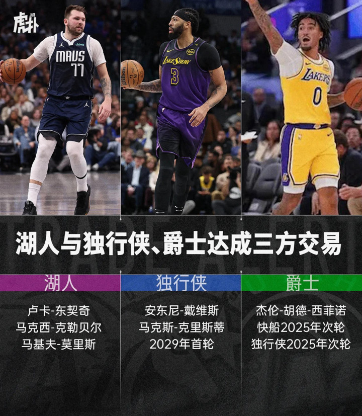 On February 2, 2025, an epic earthquake trade occurred in the NBA. In fact, I would call it the number one incredible trade in NBA history. This deal is a three-way deal between the Mavericks and the Lakers Jazz. The Mavericks traded Doncic, the team's core NBA first-team player for five consecutive years, to the Lakers. From the Lakers, they got Davis + Christie + 1 first round, etc.