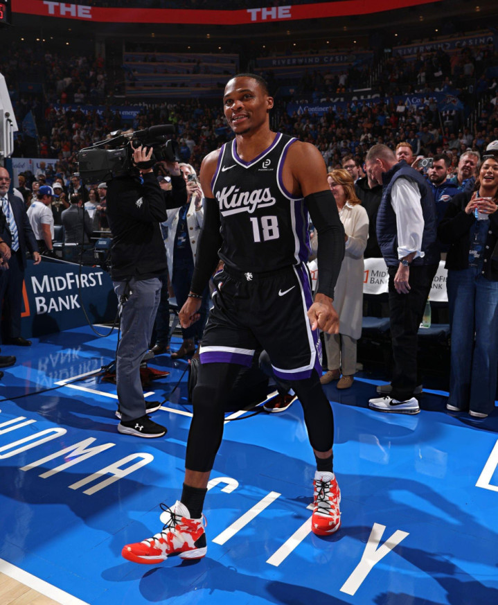 In this game, the Kings changed their lineup before the start of the game, and the team's new aid Westbrook had the opportunity to start for the first time. During his pre-game appearance, Westbrook received warm cheers from Oklahoma City fans. Westbrook started the game for a total of 30 minutes and made 6 of 16 shots, including 4 of 8 three-pointers and no free throws. He scored a total of 16 points, 9 rebounds, 4 assists and 1 steal.