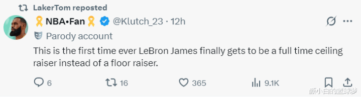 For the first time, James can truly become a full-time player who increases the team's ceiling, rather than continuing to support a team. (What he means is that LeBron will not be a drag on the Lakers, James will determine the upper limit of this team)