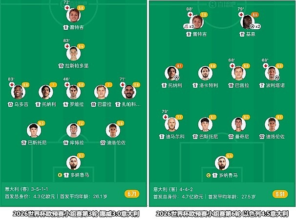 There are no miracles, only tragedies. The expected 9-goal victory did not come, and the tragic situation of being massacred by big scores in both rounds was unbearable to look at. Italy watched at home as Norway returned to the World Cup after 27 years, while itself fell into the quagmire of the play-offs. After missing two consecutive World Cup matches, the Azzurri's road back is still full of thorns.