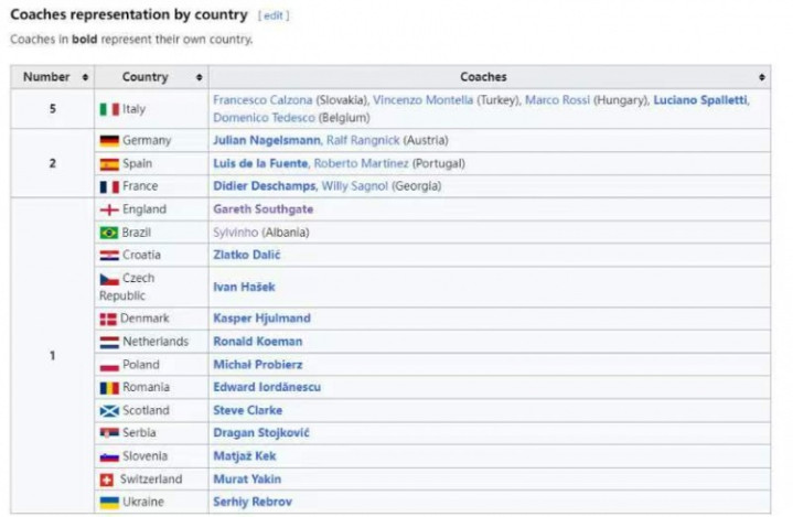 In the 2024 European Cup, Italy is the country that contributes the most coaches. There are too many good coaches and too few good players..