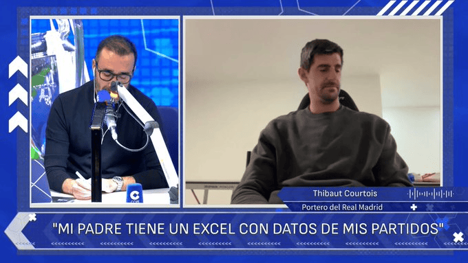 Hupu reported on November 20 that Real Madrid goalkeeper Thibaut Courtois accepted an exclusive live interview with Radio Corbett.