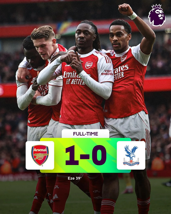 In the 9th round of the Premier League, Arsenal faced Crystal Palace at home. In the first half, Eze volleyed past his old club and scored the only goal of the game. Arsenal defeated Crystal Palace 1-0 at home, winning 7 consecutive games in all competitions and continuing to lead the Premier League.