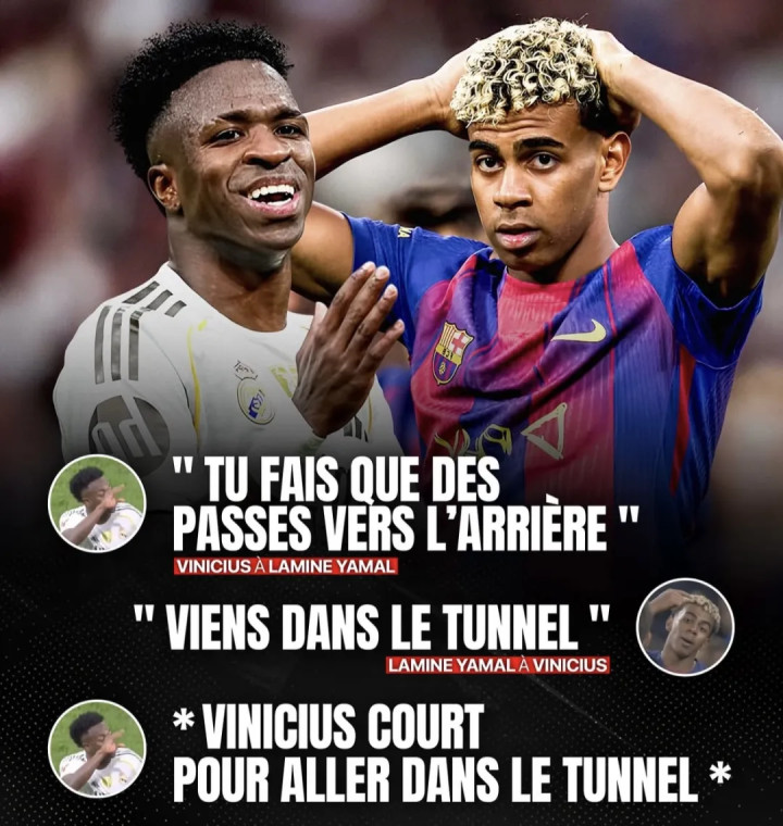 Until Vinicius met him head-on on the way back to the locker room and made a gesture that he thought he talked too much, Yamal asked Vinicius to go to the locker room to "contest". Vinicius responded while running and accepted the challenge, but someone stopped him.