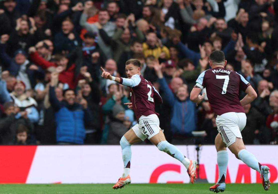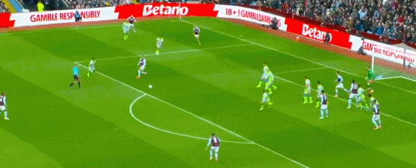 Not long after the game started, Manchester City created an opportunity. Reinders broke into the penalty area and volleyed hard, but the kick went high. In the 19th minute, Manchester City lost the ball. Cash received a lateral dribble outside the penalty area and volleyed the ball into the lower right corner of the goal. The goalkeeper had no reaction! The angle of this shot is tricky and extremely deceptive. Manchester City are in trouble. 2 minutes later, Manchester City launched a sharp counterattack. Haaland broke into the penalty area and shot low, but was blocked by the goalkeeper.