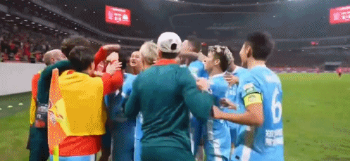 He Chao's shot was so powerful and heavy that the ball flew straight into the net with almost no rotation. After scoring the goal, He Chao made Ronaldo's signature siu celebration. His teammates swarmed over and celebrated wildly with He Chao.