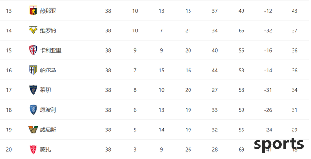 The last 36 points, ranking 16th in Serie A, successfully relegated, and scored 44 goals. He is a leader among the middle and lower-level teams. He will win the top four in Serie A next season and pass the UEFA group stage.