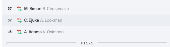 In the 57th minute of the game, Chukwueze and Lookman were also substituted. This also means that all the starting three forwards worth a total of 120 million euros have been replaced.