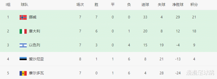 Although Italy struggled to score 3 points, the group situation is still not optimistic: 3 points behind Norway, and the goal difference is 17 fewer! Direct dialogue with Norway in the final round means: Even if Italy wins in the final round, as long as they cannot win by a huge score, they may still miss the pass and can only play in the play-offs for the third consecutive time! Two absences from the World Cup have left Italian fans heartbroken, and now they are standing on the edge of the cliff. Can the Azzurri break the curse and qualify for the World Cup?