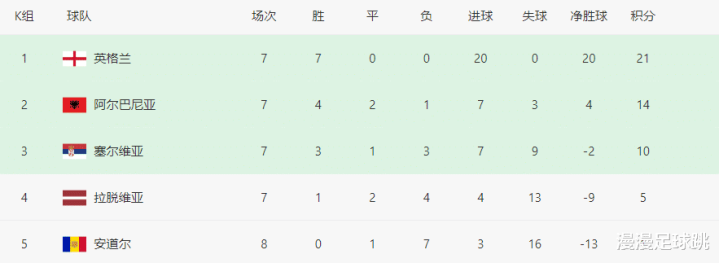 In other games, France 4-0 Ukraine, advancing to the World Cup, England 2-0 Serbia, winning all 7 games, which is quite domineering.