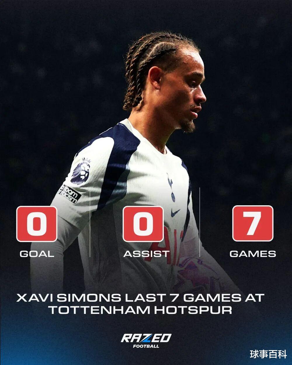Throughout the summer, Harvey Simons was Chelsea's pursuit target, but Tottenham finally won out in August and successfully introduced this "super talent". Reporter Graeme Bailey also confirmed that Tottenham's top brass believe they have completed a blockbuster signing. So far, though, we haven't seen that kind of world-class talent. Simmons has only one assist in eight games and has yet to score a goal.