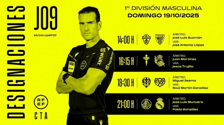 Part of the referee arrangements for the 9th round of La Liga are as follows: