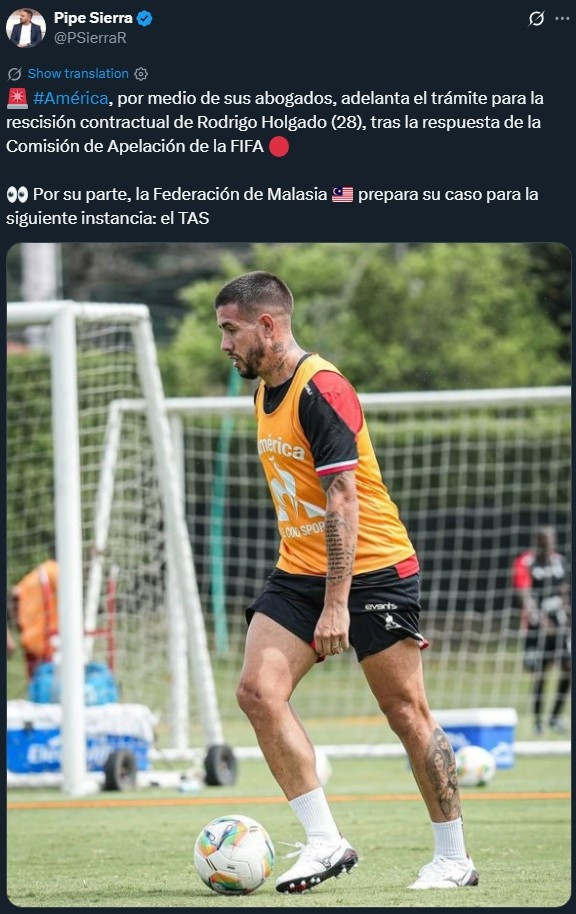 Reporter PipeSierra reported on November 5 that Rodrigo Holgado, a naturalized player from Malaysia who violated regulations, was terminated from Cali America Club.
