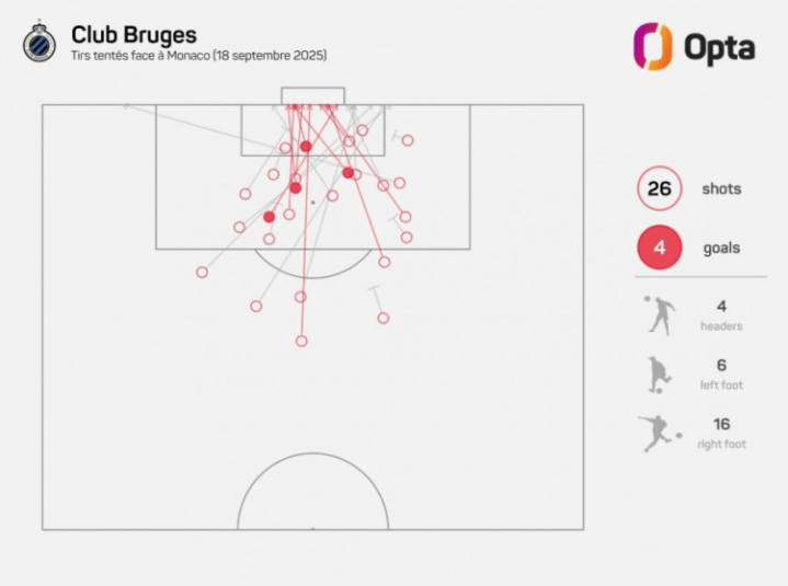 In this game, Monaco had 26 shots by his opponent, including 10 of which were aiming. This is the most shots Monaco has encountered in a single game since Opta began collecting Champions League data in the 2003/04 season.