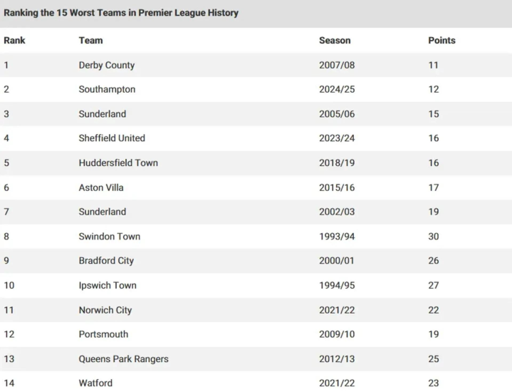 The five worst teams in the history of the Premier League, so bad that it makes people dumbfounded