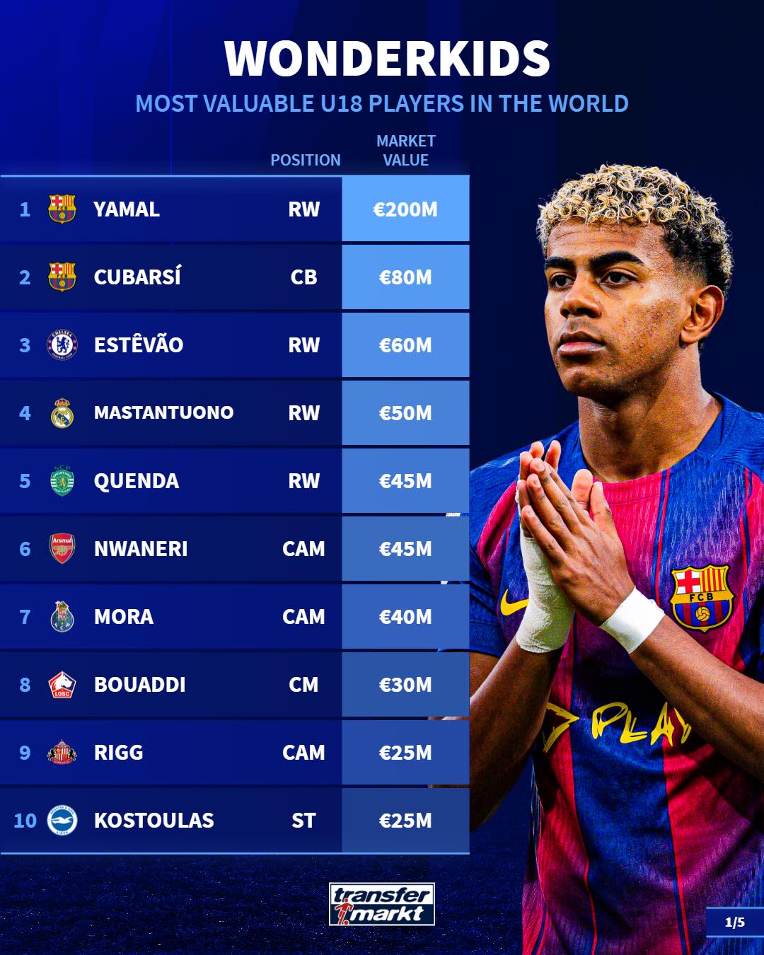 1. Yamal (Barcelona) ), right winger, 200 million