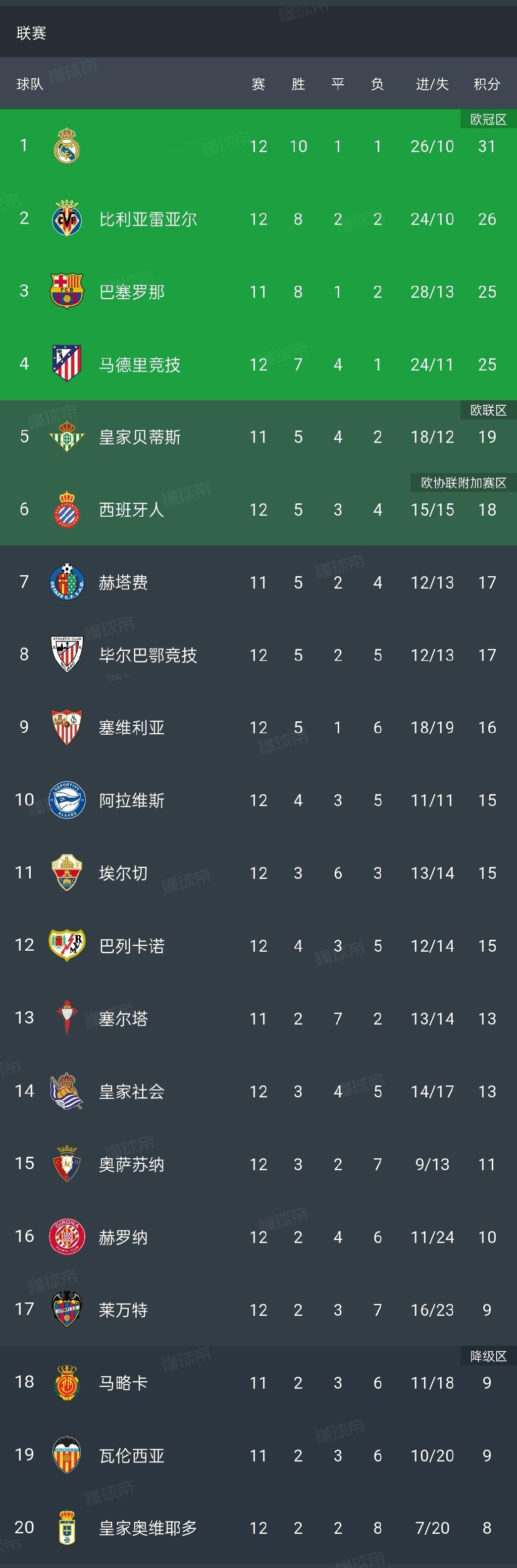 In the early morning of November 10th, the 12th round of La Liga ended with two focus matches. Real Madrid lost 0-0 to Rayo Vallecano in the away game. Mbappe failed to score in two consecutive games. The league's four-game winning streak was ended and they were winless in two consecutive games. Athletic Bilbao defeated Real Oviedo 1-0 at home, with Nico Williams scoring the winning goal. Here is a brief overview of the two games.