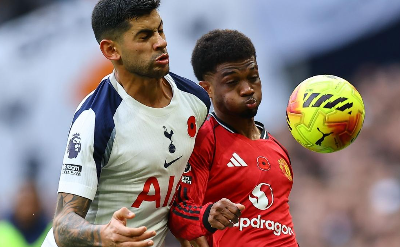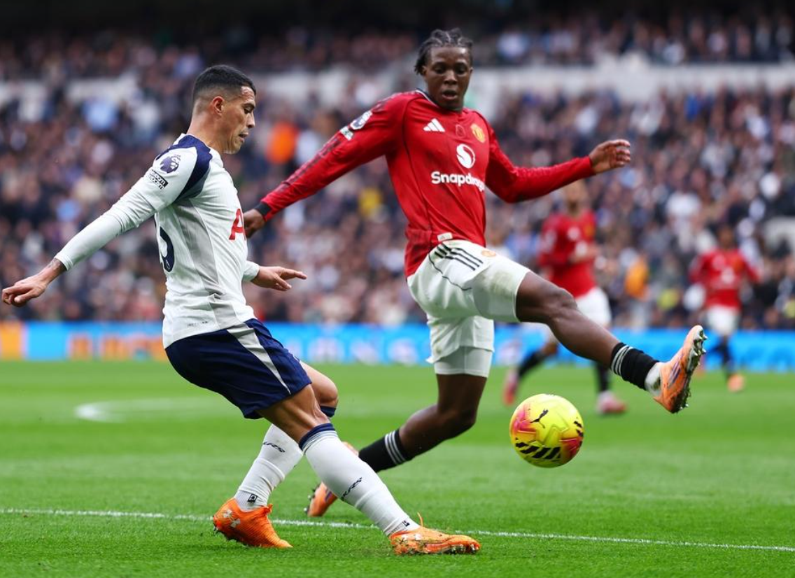 In the 32nd minute, Tottenham lost the ball. Amade passed the ball from the right, Mbemo headed in from behind and the ball went close to the goal. Manchester United takes the lead. Later, Romero was shown a yellow card for a foul. At halftime, Tottenham trailed 0-1. Tottenham had 54% of the ball in the first half, and none of their three shots were on target. Manchester United also shot three times in the first half, but seized one opportunity to score.