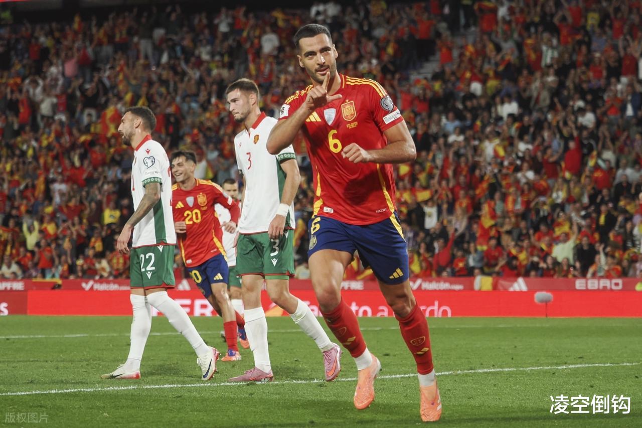 World Cup Qualifiers: 4-0, Spain won 4 consecutive victories + ranked first, 29-year-old Merino scored an invincible double shot